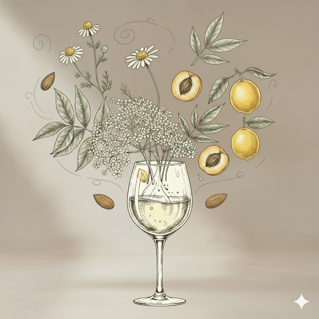 - illat & aromák: mezei virágok, bodza, sárgahúsú gyümölcsök, keserű mandula